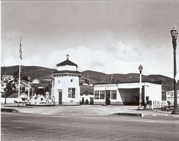 Before escaping destruction, the great structure was actually part of a Union Oil Company gas station at PCH and Broadway. It was moved across the street in 1937 by a team of horses.