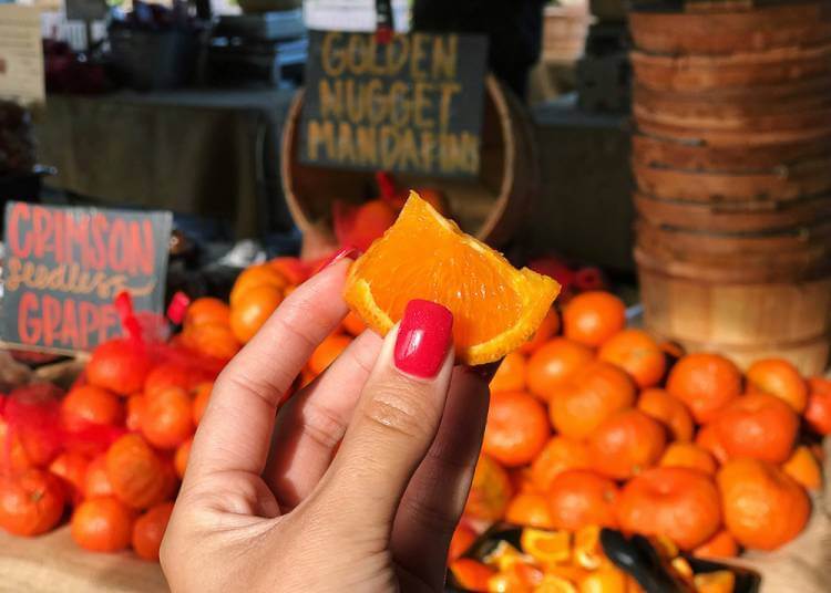 When I arrived, I was immediately drawn to the brightness of citrus fruits. I walked over to what I thought was like every other fruit stand, but looking back, I deeply regret my preconceived notion. I chatted with the folks from Sunny Cal Farms, and in addition to growing the freshest fruit for each season, they specialize in cultivating all-organic and natural hybrids including Cara Cara Oranges, a beautifully, sweet and juicy mix between an orange and pomelo. Before buying, you can sample everything they sell, and co-owner Shaun Rosendahl will encourage you to do so because he is passionate and confident in the produce they provide. This is the move to make, trust me. If your stomach can’t handle all their samples, then definitely make sure you start with the Coconut Roasted Almonds or Cold-Pressed Pomegranate Juice. Earlier this month, I didn’t even know an orange-pomelo hybrid existed, and now I cannot imagine life without them.
