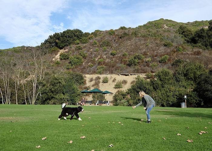 When it comes to exercise (Sally needs to work off that prime rib…and multiple cupcakes!!), we love to take her to the LAGUNA BEACH DOG PARK. It’s one of the biggest – and best – dog parks we’ve ever taken her to, and Sally loves all of the friendly neighborhood pups that frequent it.