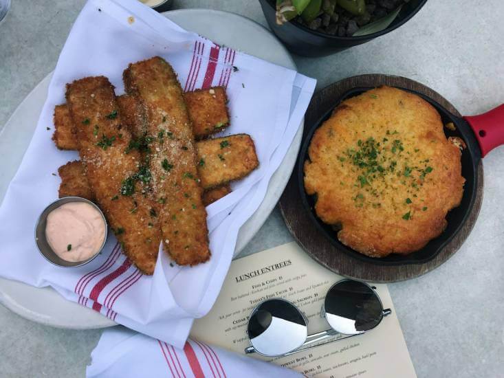 Start with the Lumberyard Planks, which are addictively delicious strips of Crispy Zucchini served with Lemon Aioli. This item has been on the menu since they opened, and it’s a starter you must order when dining here.