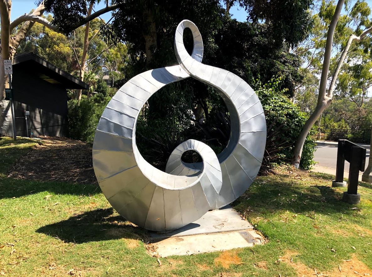In memory of her son, Alice Harmon said of the work, “Cathexis is a sculpture of intertwined scrolls. It is dedicated to all those in love who sit within it.”