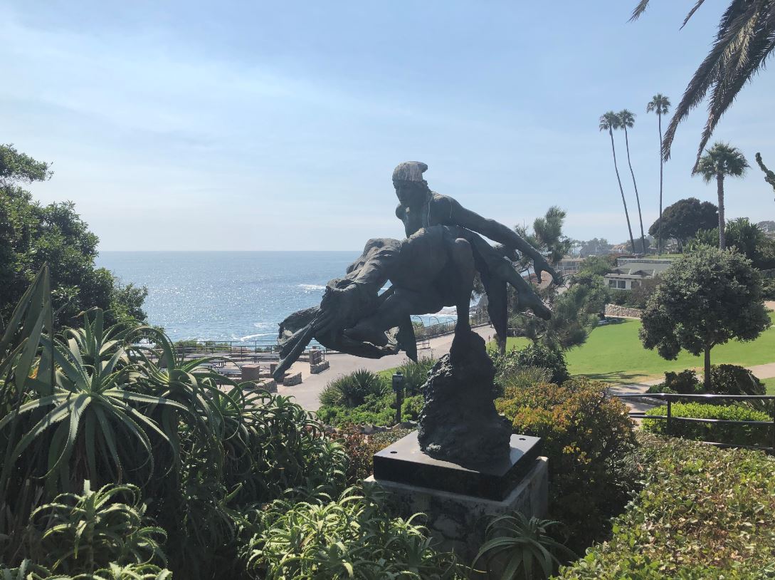 This piece was originally installed as a temporary loan from Miranda Galleries and in late 2008 was donated to the City’s permanent collection. Nestled on the spectacular coast overlooking the Pacific Ocean, Tuan’s ultra-romantic sculptural vision of two lovers find their perfect point of balance and trust.