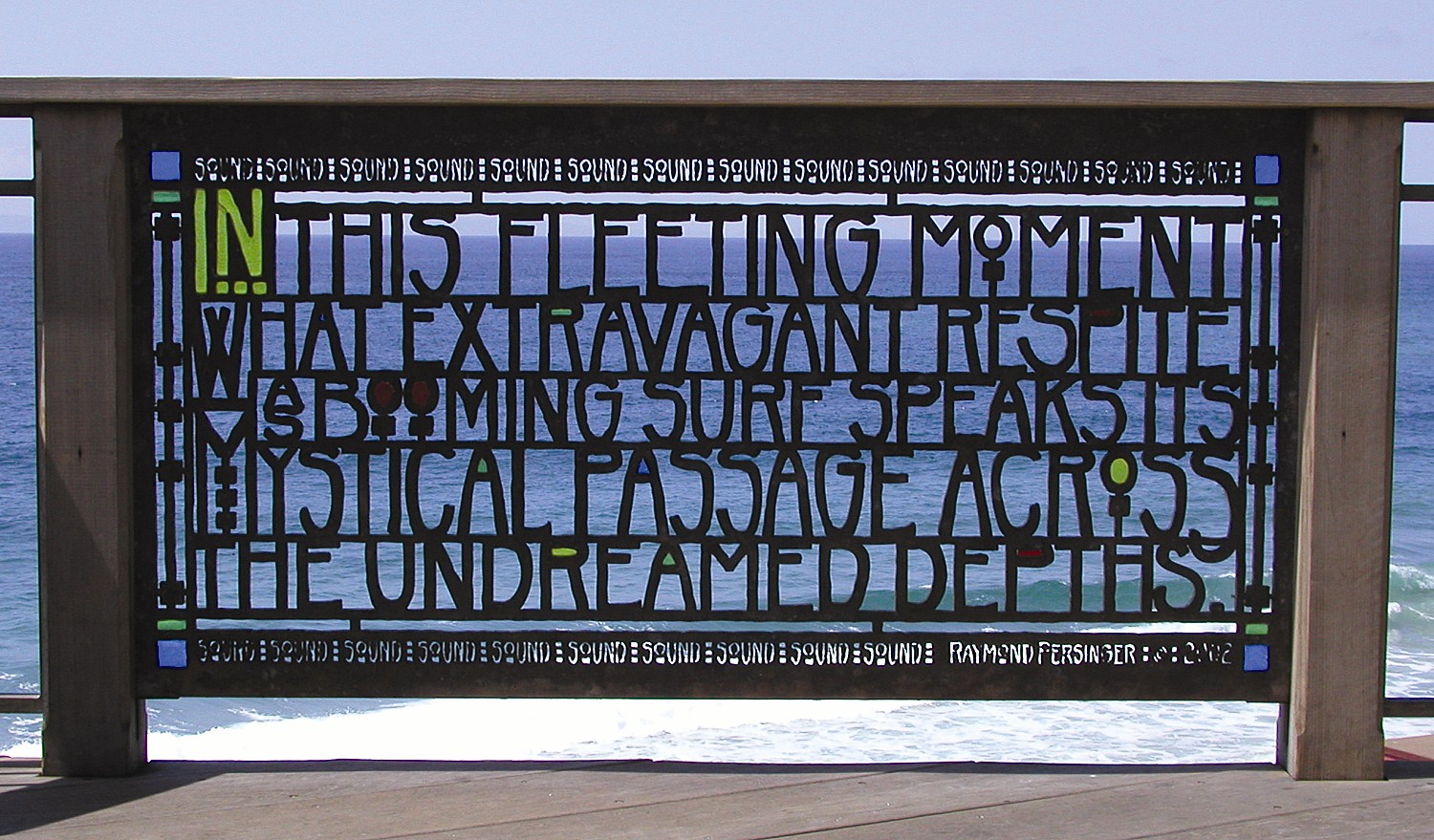 Raymond Persinger explains “There is often a gap between looking, seeing and understanding.” Written by the artist these site specific poems remind us of the fragile and fleeting quality of that experience.